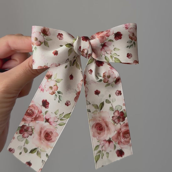 Alessandra Hair Bow Barrette: Vintage Floral Ribbon Clip