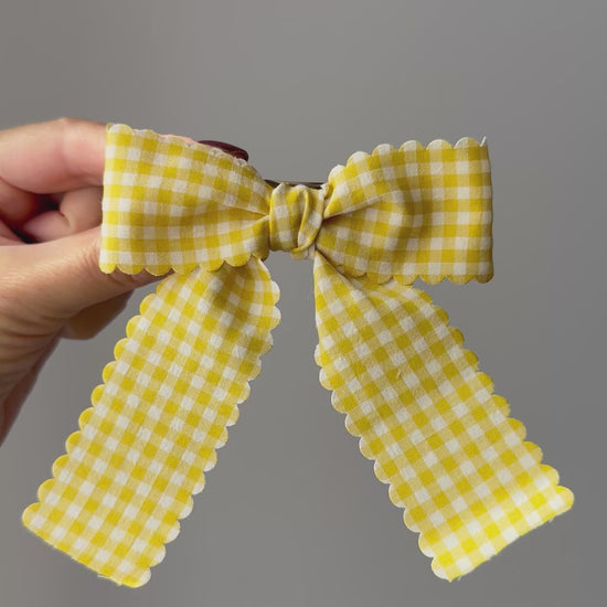 Giulietta Hair Bow Clip: Vanilla Dream Yellow Gingham with Scalloped Edges