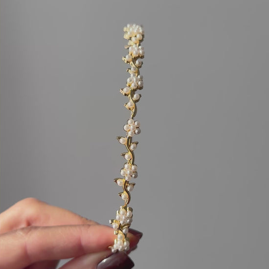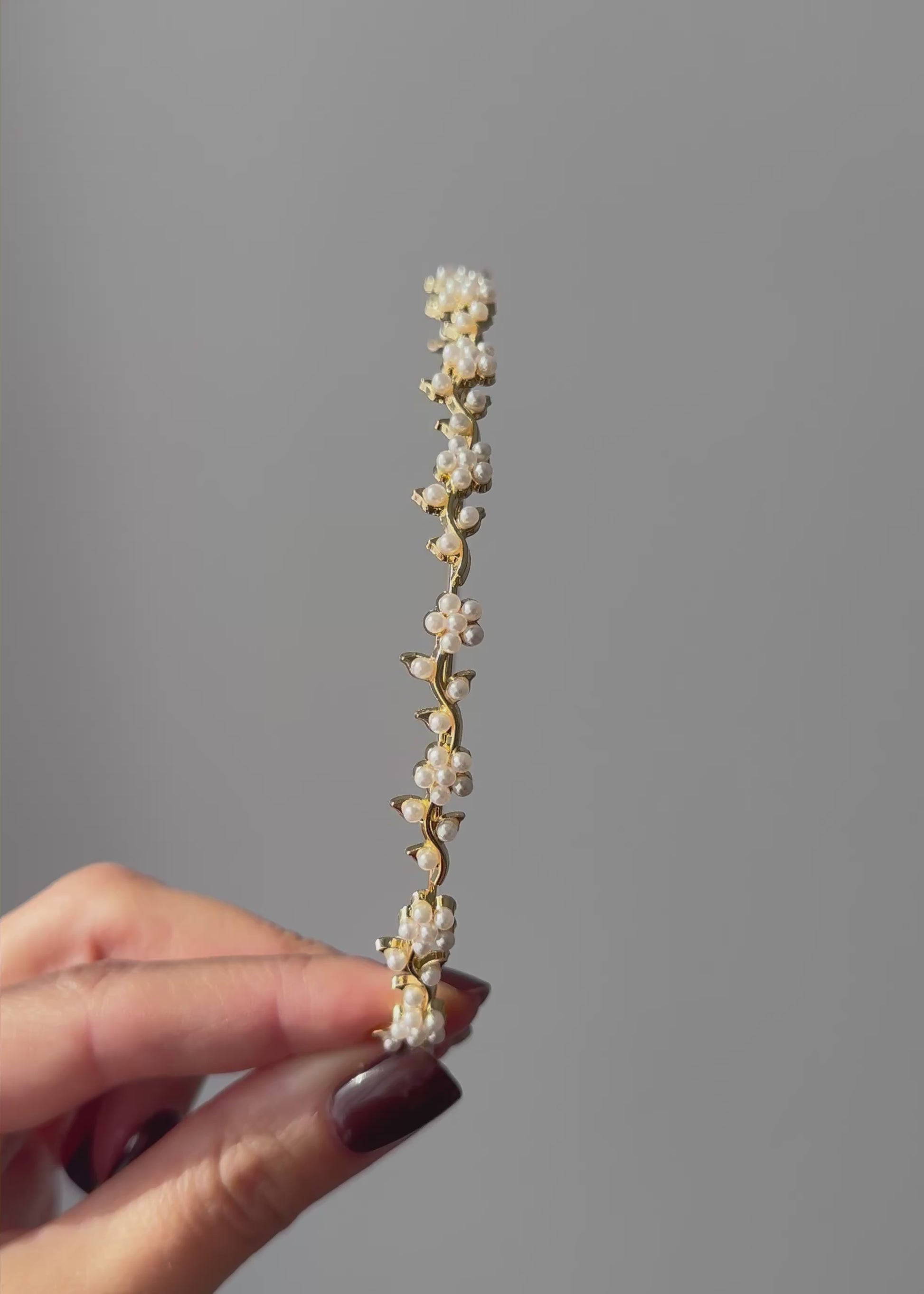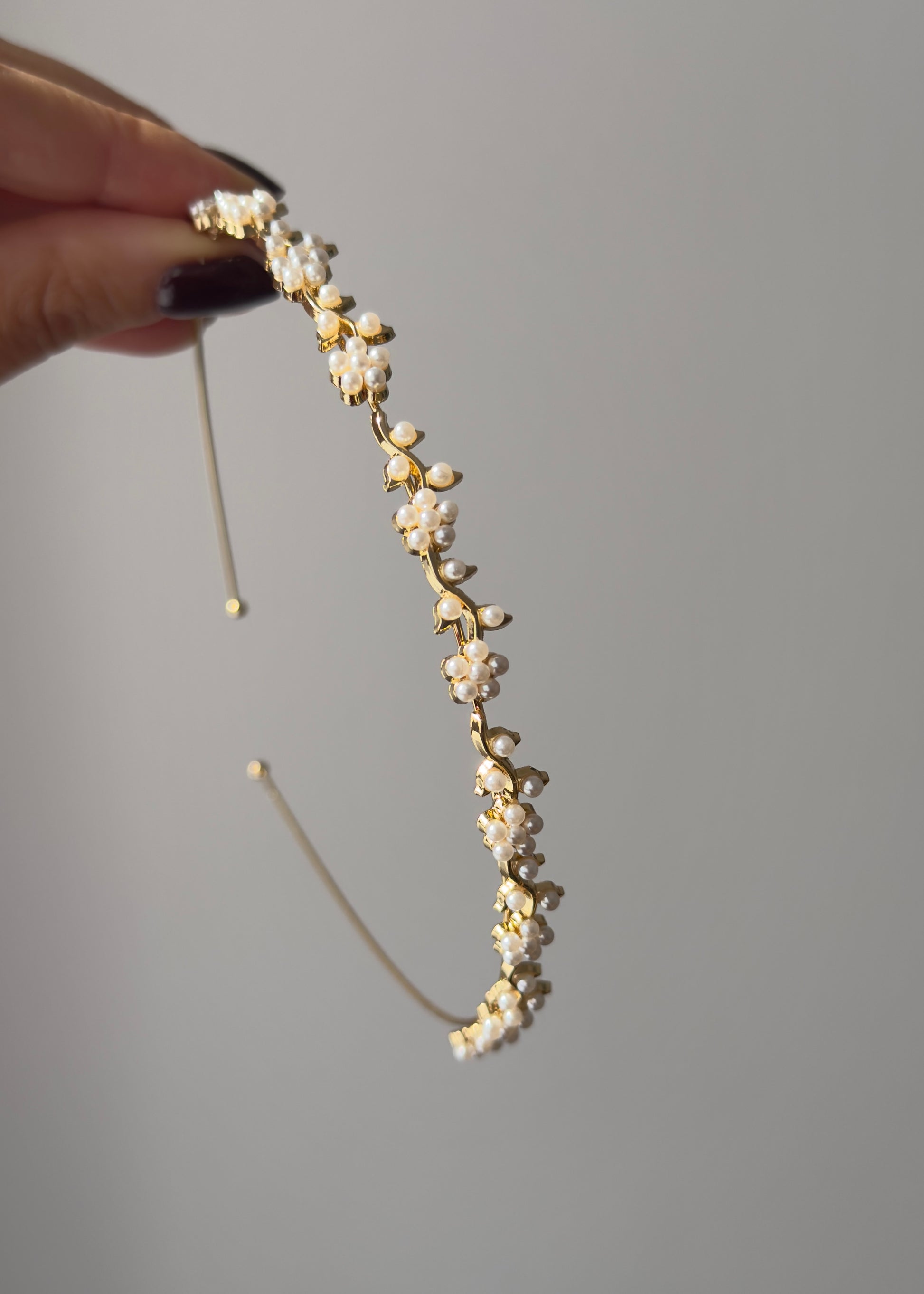 Caterina Perlblumen-Haarreif – Zarte Blüte in Gold