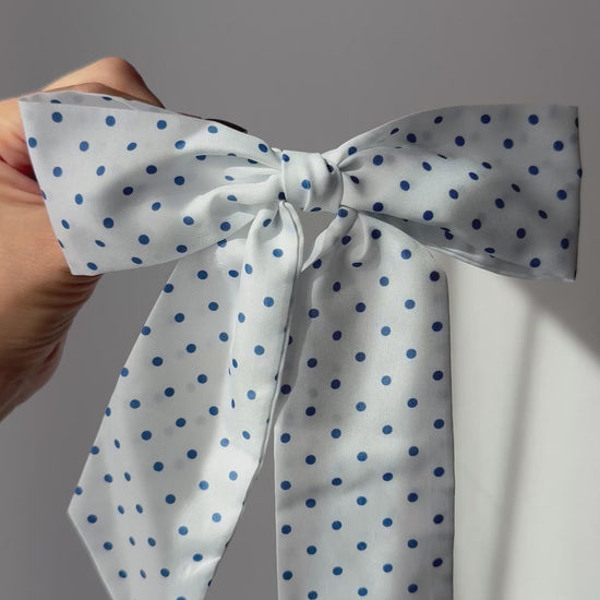 Celeste Bow – Verspielte Eleganz in blauen Polka Dots