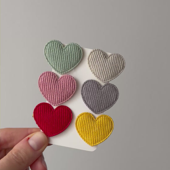 Verleihen Sie jeder Frisur mit unseren Cord-Herzspangen zum Valentinstag einen Hauch von samtweicher Textur und zeitlosem Charme. Jede Spange besticht durch ein perfekt geformtes Herz aus weichem, geripptem Cordstoff und sorgt so für einen gemütlichen Retro-Chic – ideal für die Feiertage und den Alltag.