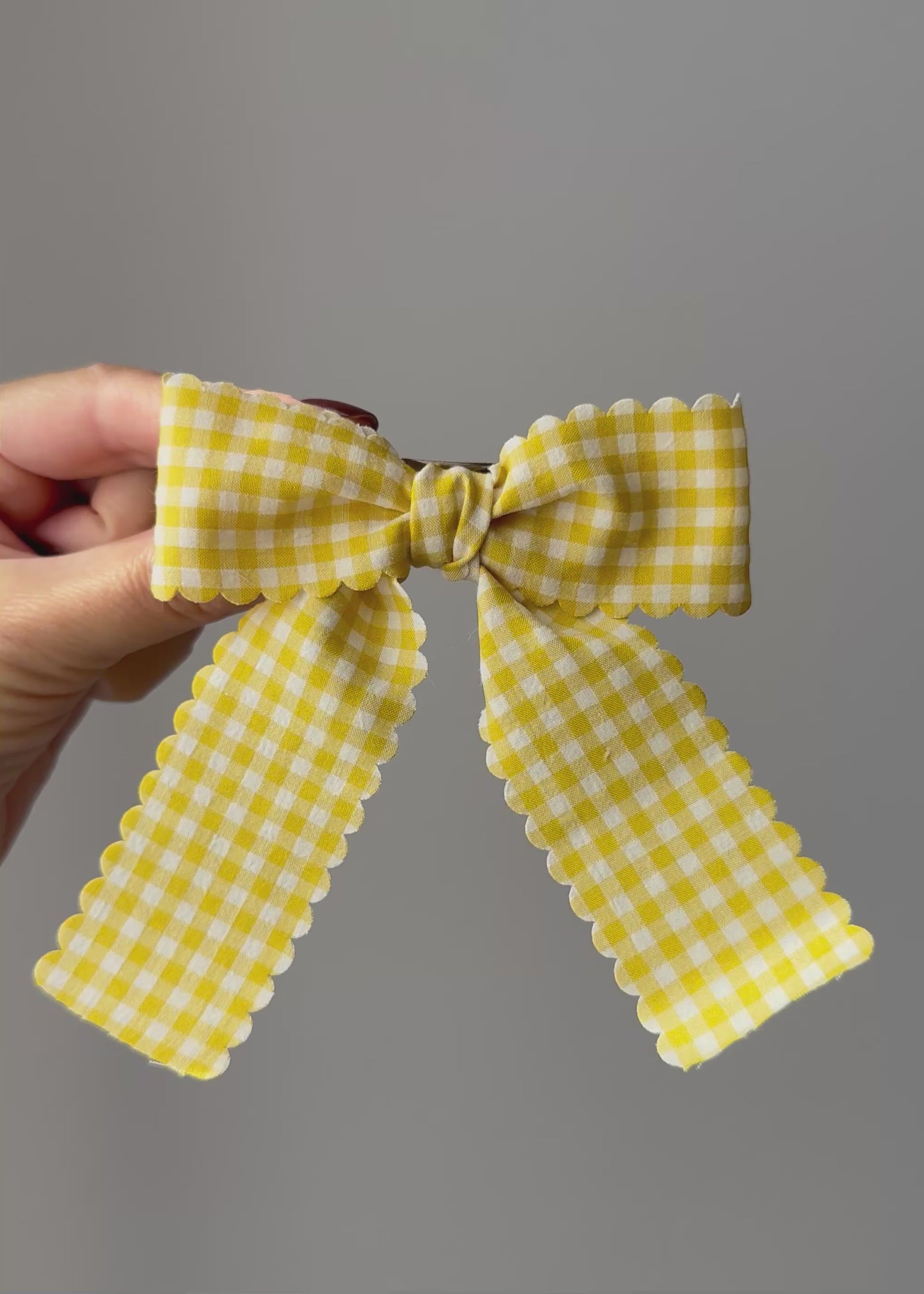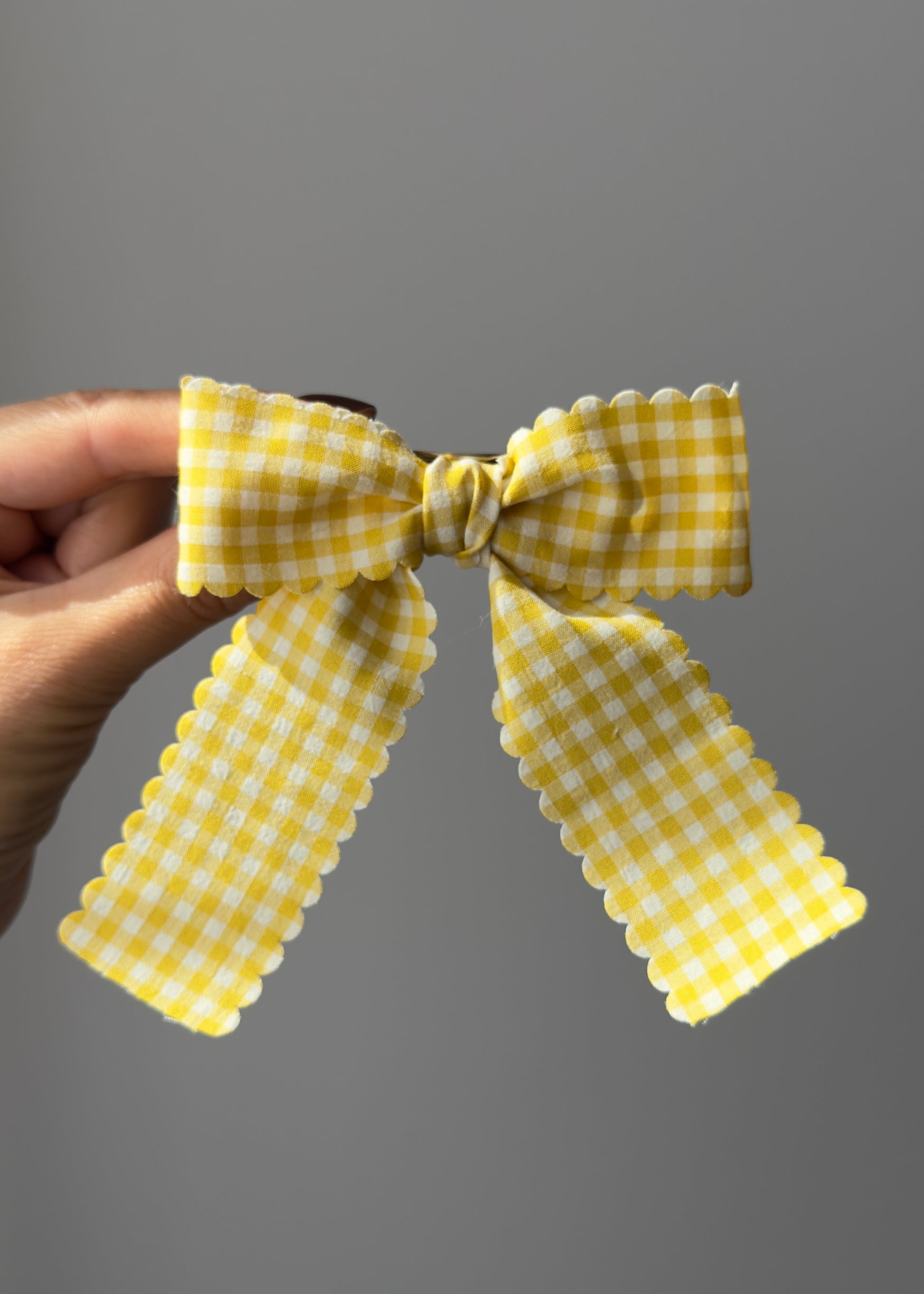 Haarspange „Giulietta“: Gelbes Gingham-Muster in Vanilletraumoptik mit gewellten Kanten