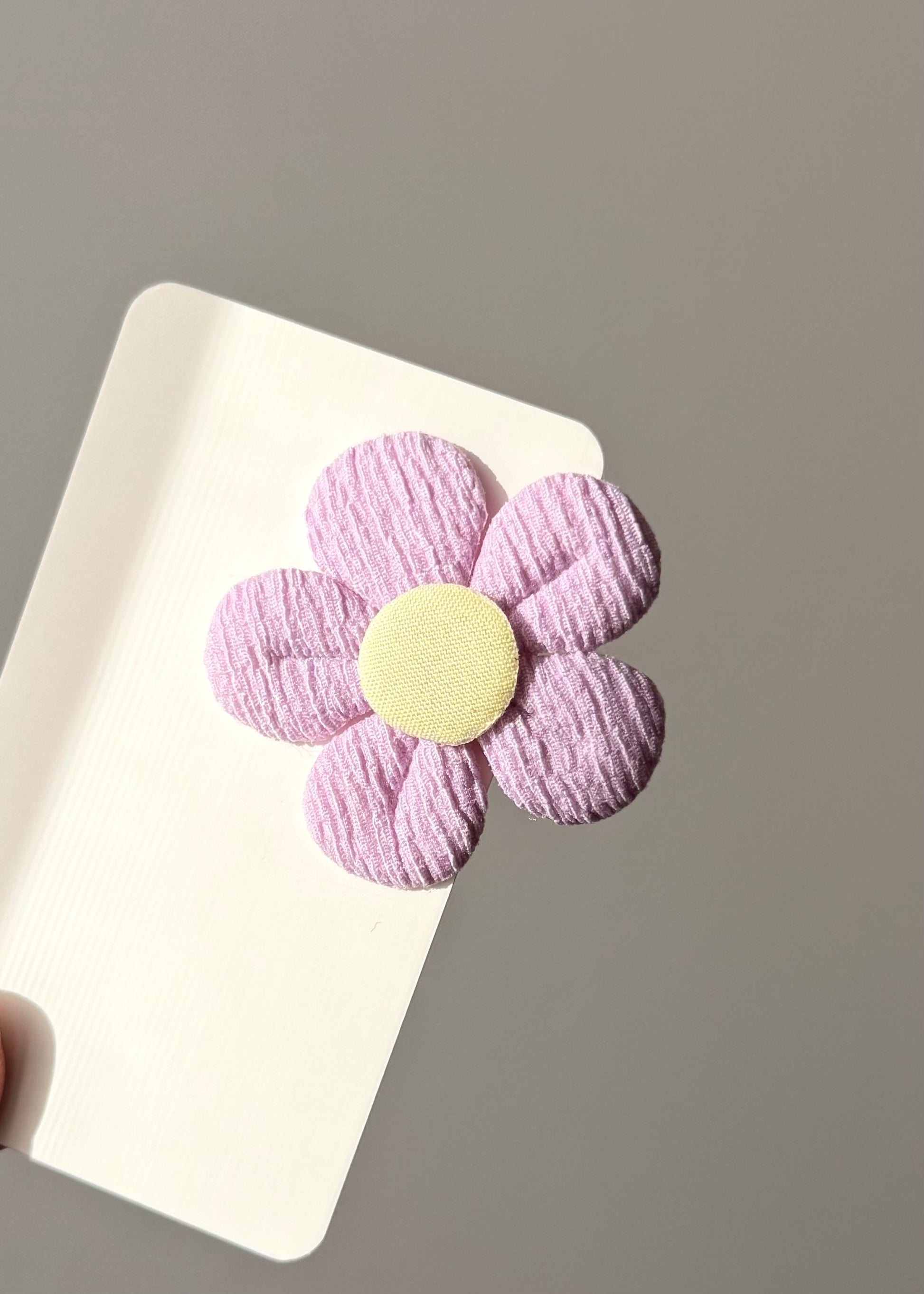 Eine schlichte Blume, die sofort Sonnenschein bringt. Diese handgefertigte Fliederblüten-Haarspange verleiht jeder Frisur eine sanfte, fröhliche Note – wie ein kleines Stück Frühling, das man das ganze Jahr über tragen kann.