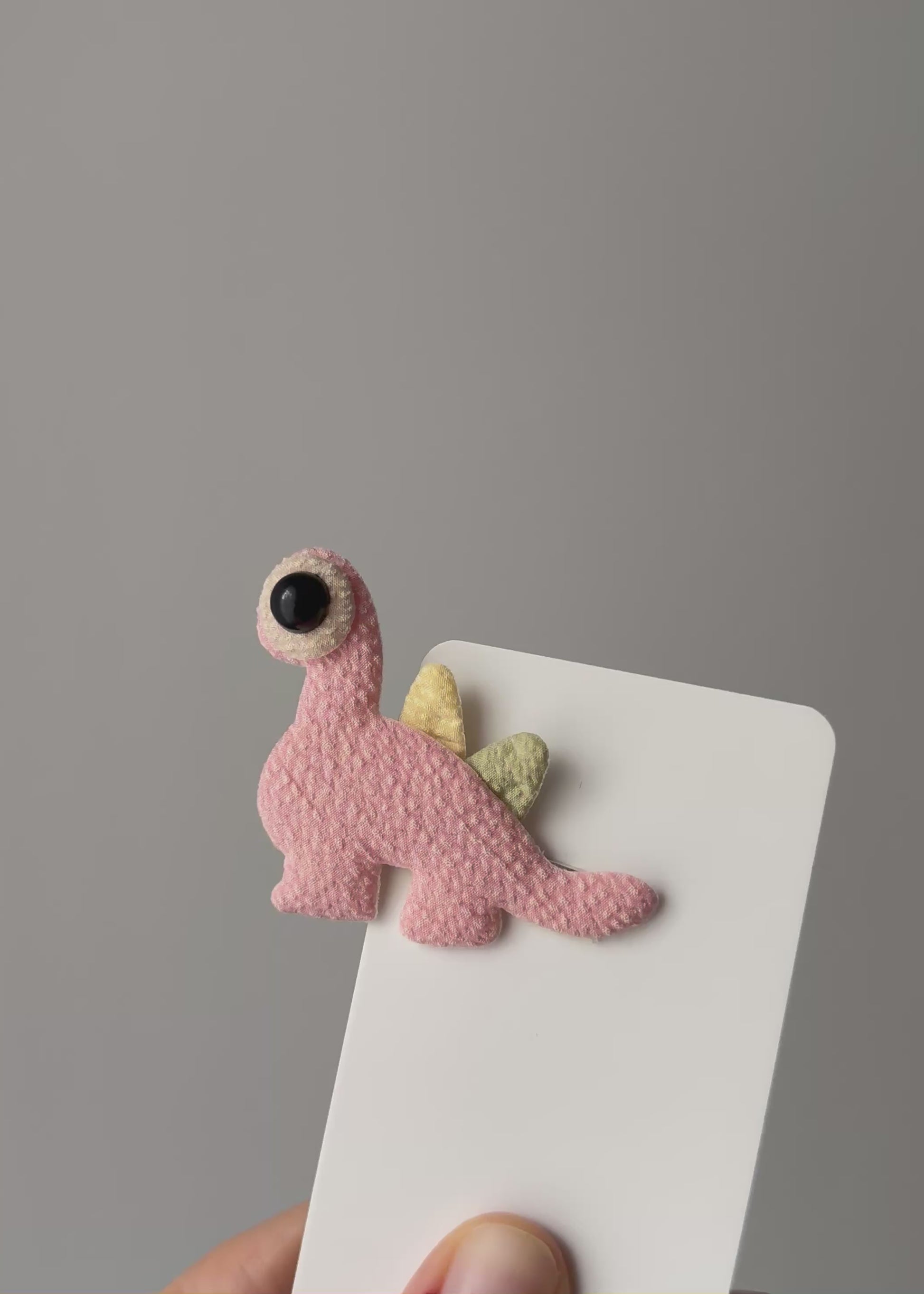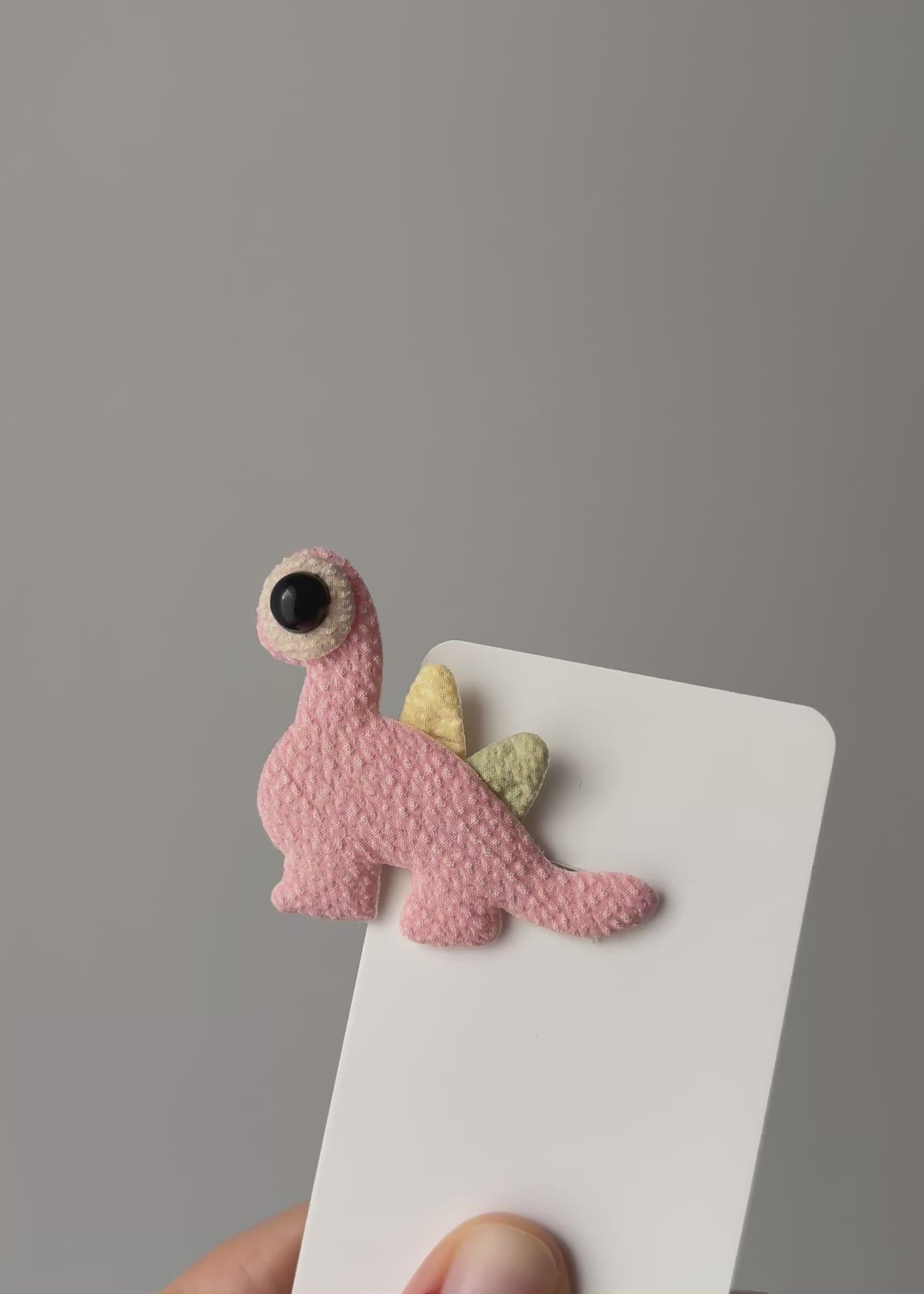 Ein niedlicher kleiner Dinosaurier, bereit für jedes Abenteuer. Diese weiche Haarspange zeigt einen pastellrosa Dino mit winzigen goldenen Stacheln – eine witzige Interpretation der Urzeit, die sanft, freundlich und voller Charakter wirkt. Das übergroße Auge verleiht ihr einen skurrilen, märchenhaften Charme, dem kleine Entdecker nicht widerstehen können.