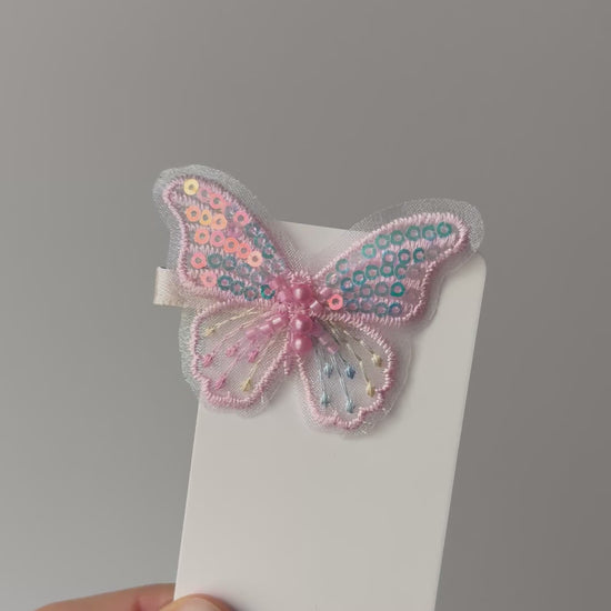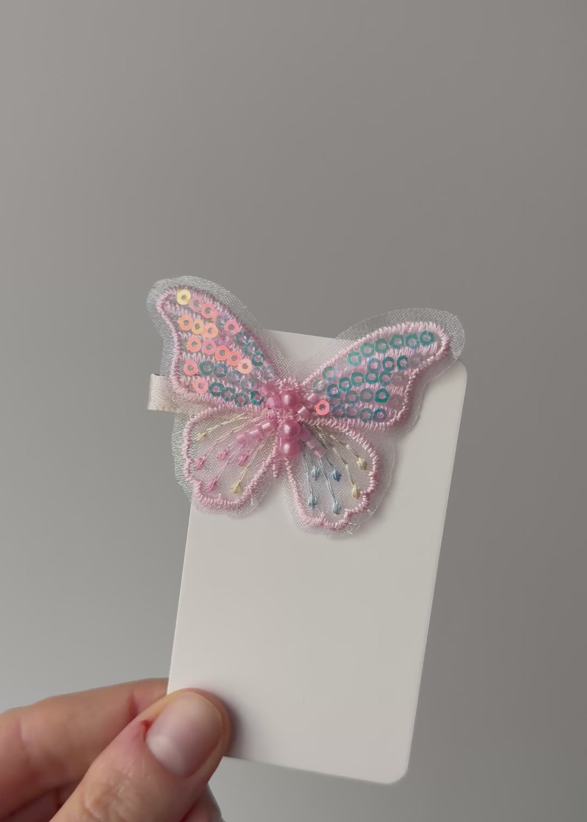 Fermaglio per capelli a farfalla con paillettes – Magia pastello scintillante