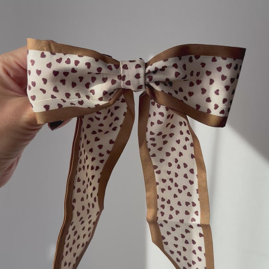 Alba – Heart-Print Satin Bow Barrette